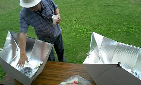 午後の収穫会の準備が進みます ソーラークッカーでご飯を炊きました