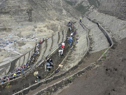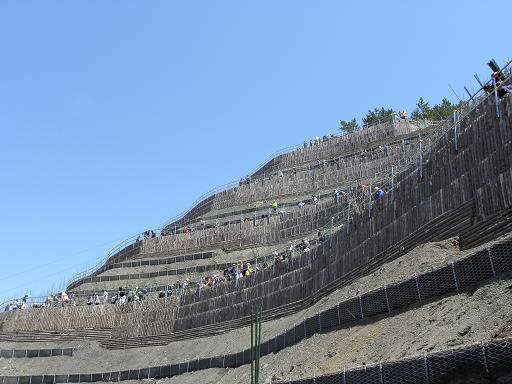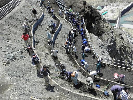 場所は、昨年同様の戸四郎沢付近の植樹地にて開催され、24日の参加者者は900人、植樹本数は4500本、25日の参加者は950人、植樹本数は5000本で、両日の総参加者数は1850名で9500本の苗木が植えられました。