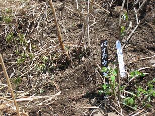 この周辺は、コナラ、ミズナラを中心に植樹しました 多少大きな苗はこのように支持します