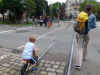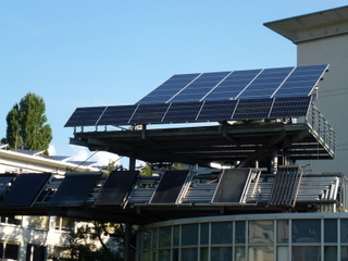 フライブルク旧市街地〜フライブルク駅へ 駅の壁面ソーラーパネル
