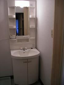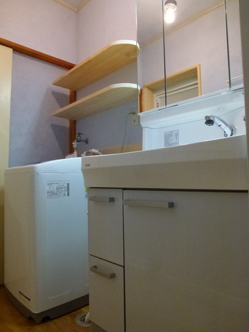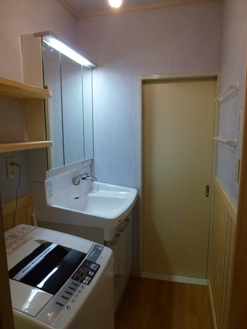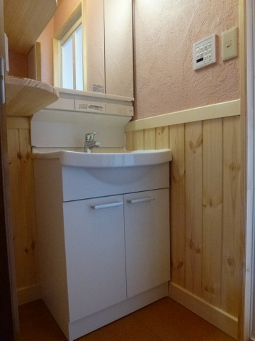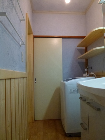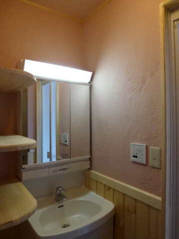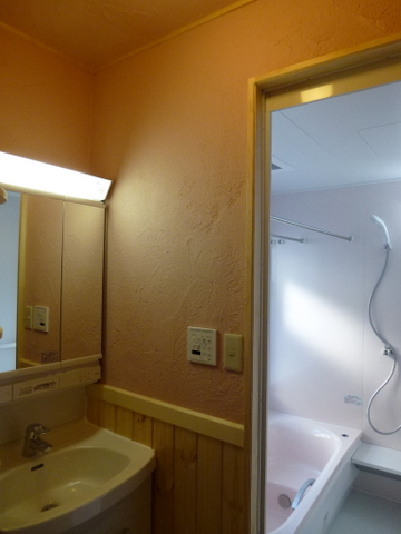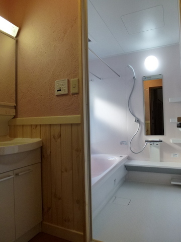 脱衣所側:内装・ドイツ・ウッドチップクロス(洗面器具:既存使用) 給湯:エコジョーズ