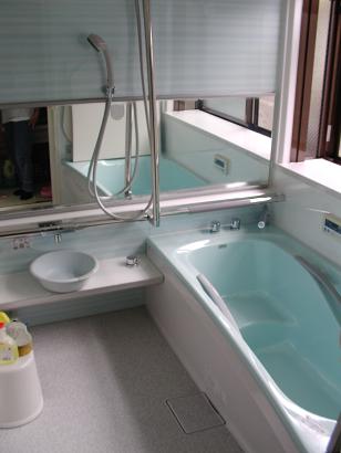 | 戸建・0.75坪の半ユニット浴室 ⇒ ワイド1坪(1717)ユニット・バスに増床 |