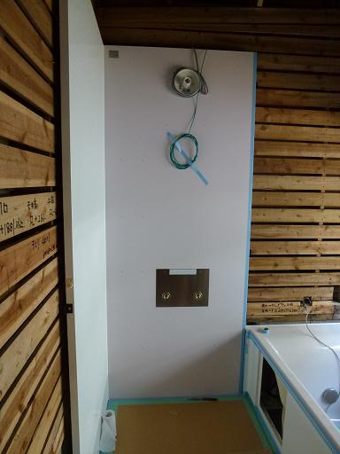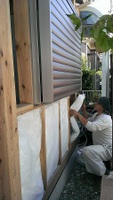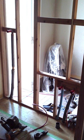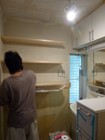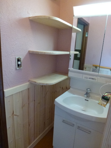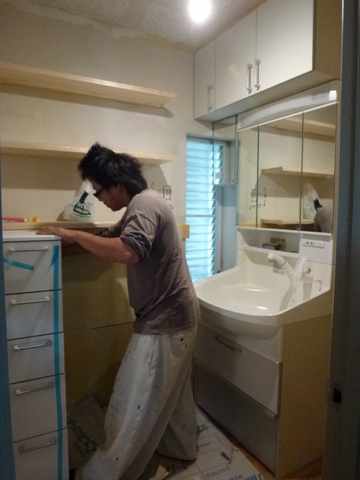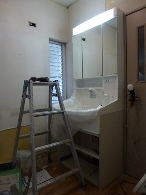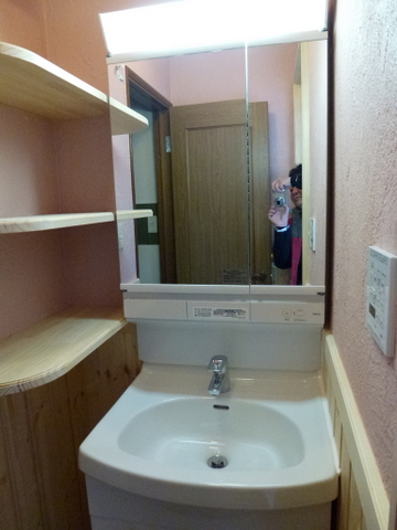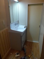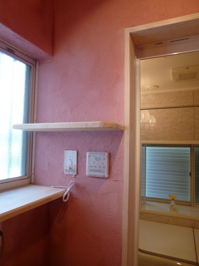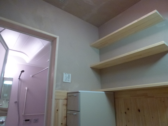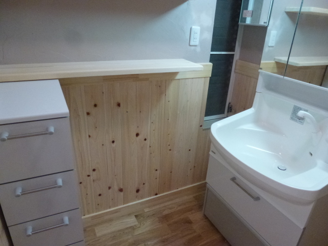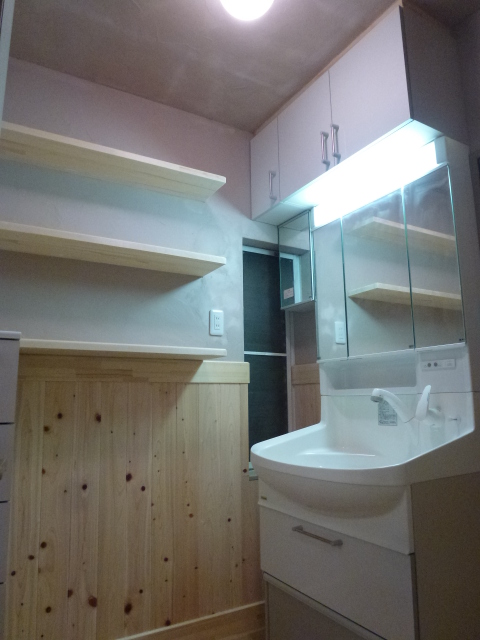 外壁を仕上げ、洗面脱衣所側のリモデリング