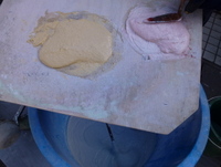 腰壁から上:スイス本漆喰+ドイツ自然素材顔料ウラで着色