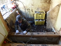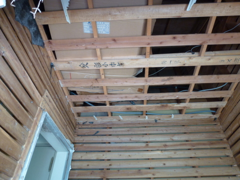 既存浴室の床、壁、天井を解体後、構造材の点検