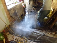 基礎を先行し、解体、内部の設備、電気、土間打ち