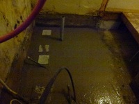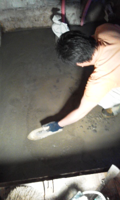 配管、電気配線を事前に、浴室全体の床にコンクリートを打設し、平坦に仕上げます