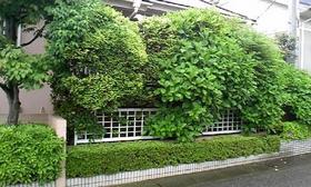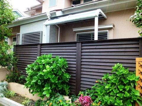 道路側の植栽を抜根、木製のルーバーフェンスを造作