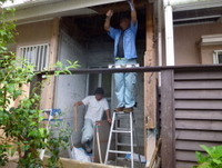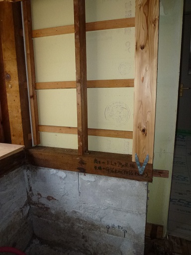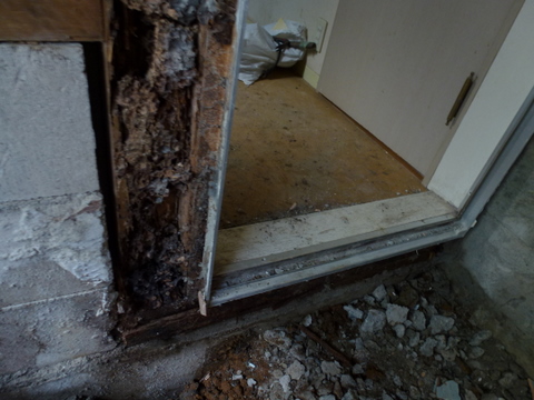 蟻害のあった浴室入口の柱、窓枠下地材を、健全な材に交換