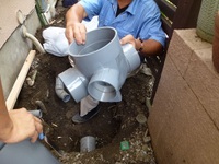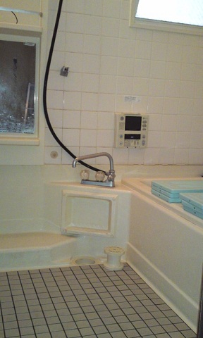 新規ドアのサイズ変更や本体搬入の作業のため既存の脱衣所の壁片面は解体する事が多いとお考え下さい。また、漏水の少ない給湯器は自然循環の追い炊き機(2穴)⇒強制循環の追い炊き・給湯機(1穴)へ変更する費用も予算に入れた計画をいたしましょう。 |