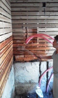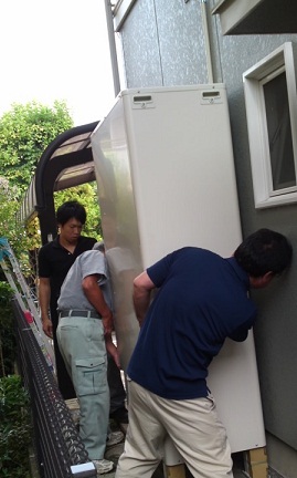 新規ドアのサイズ変更や本体搬入の作業のため既存の脱衣所の壁片面は解体する事が多いとお考え下さい。また、漏水の少ない給湯器は自然循環の追い炊き機(2穴)⇒強制循環の追い炊き・給湯機(1穴)へ変更する費用も予算に入れた計画をいたしましょう。