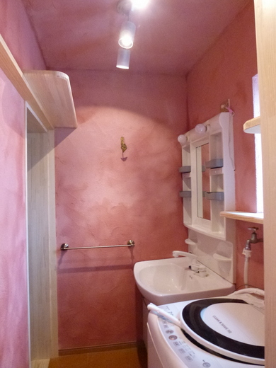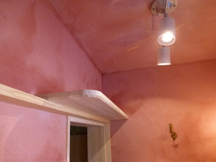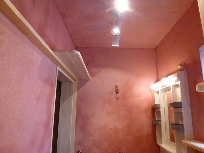 サニタリー:内装はスイス本漆喰カルクウォール左官塗り(着色:ドイツ顔料URA)