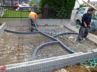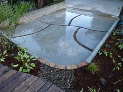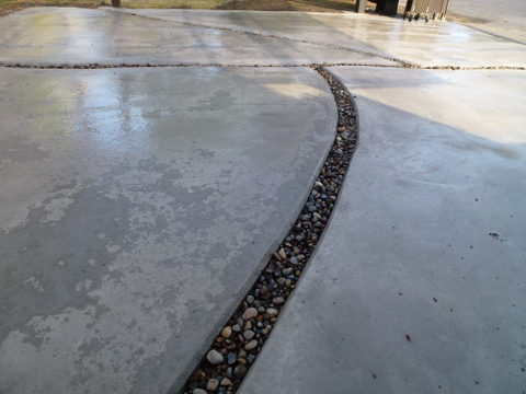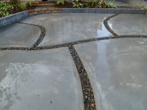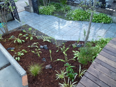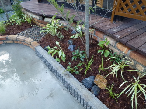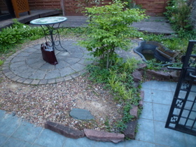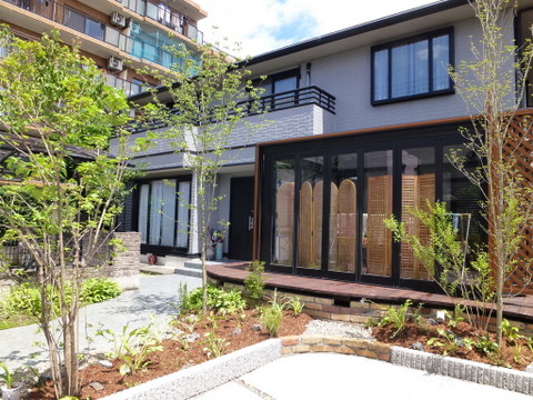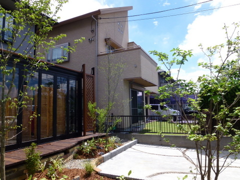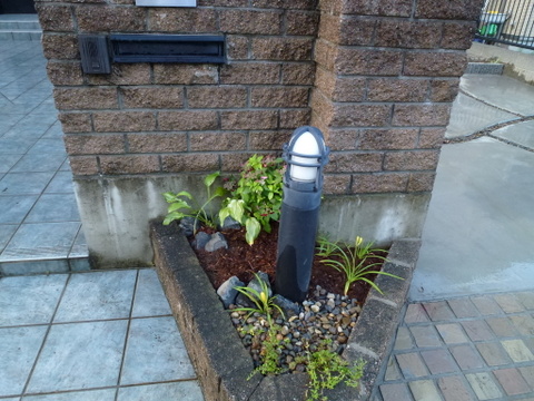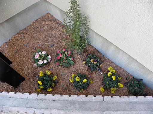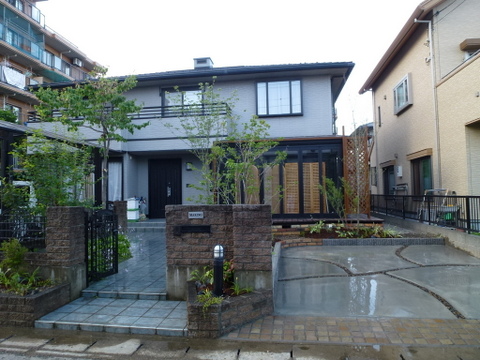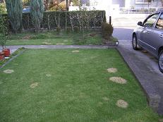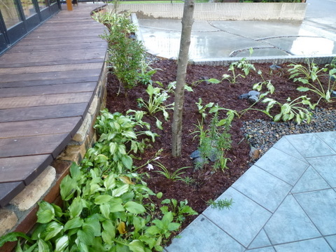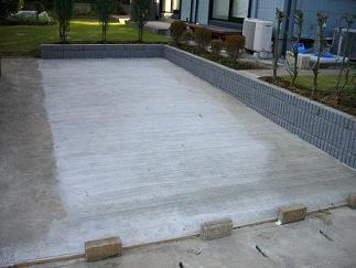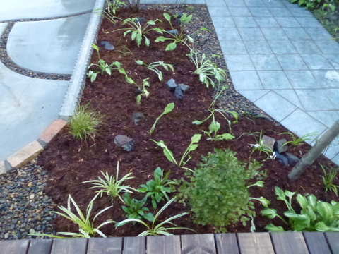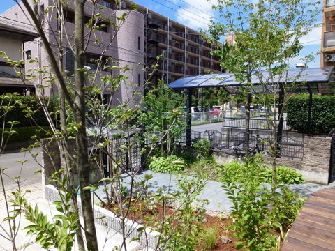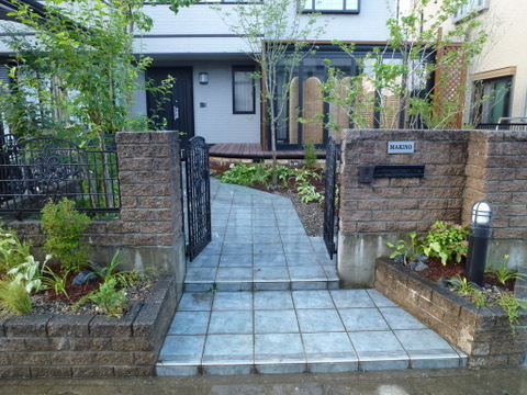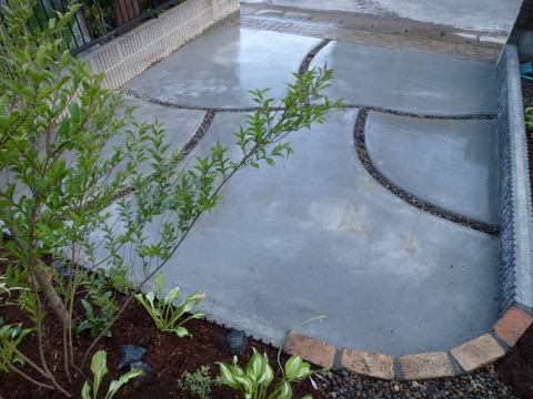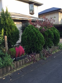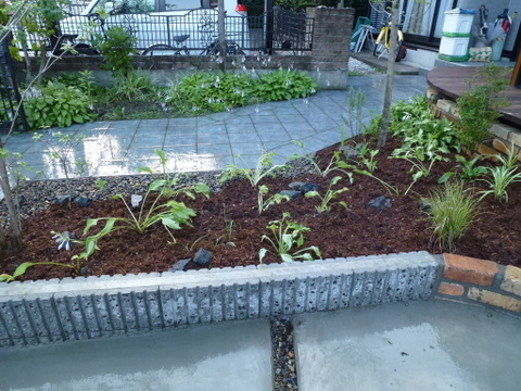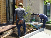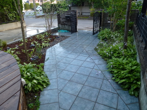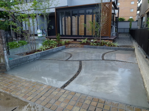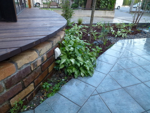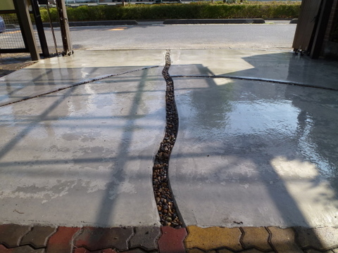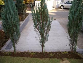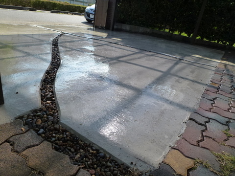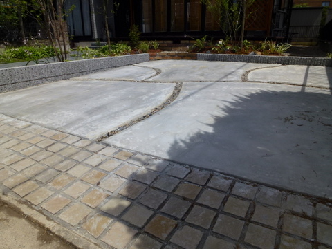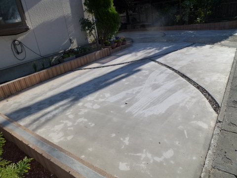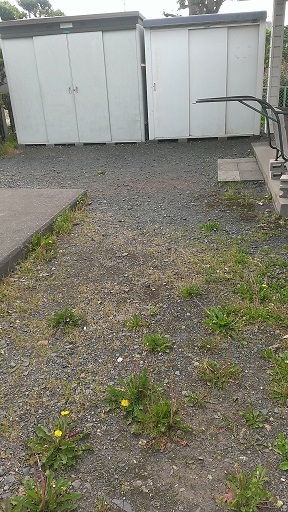 隣地(園路三面)は防草シート+六分砂利敷き込み(鬼怒川砂利)