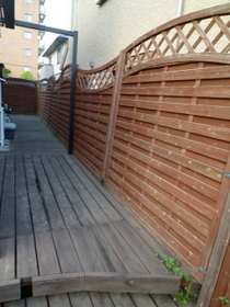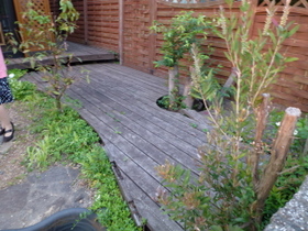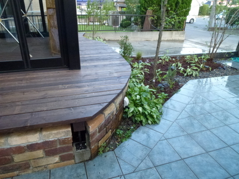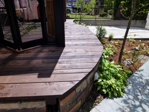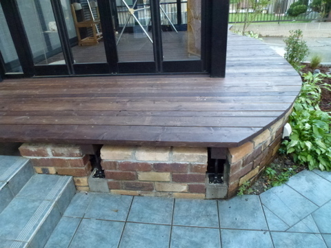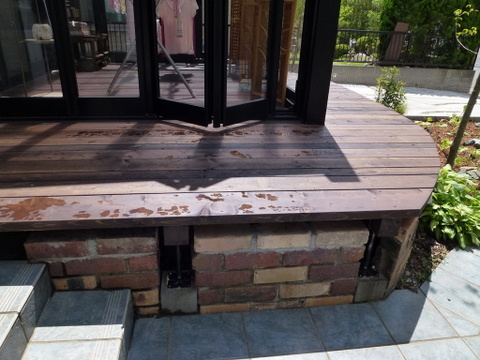 デッキの造作、鋼製束でシロアリから守る通気のよいデッキ