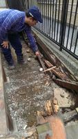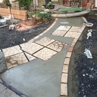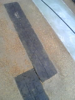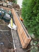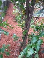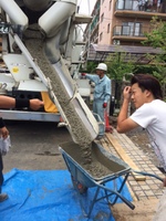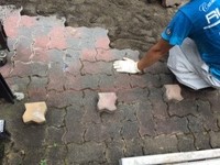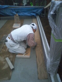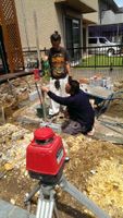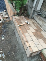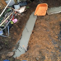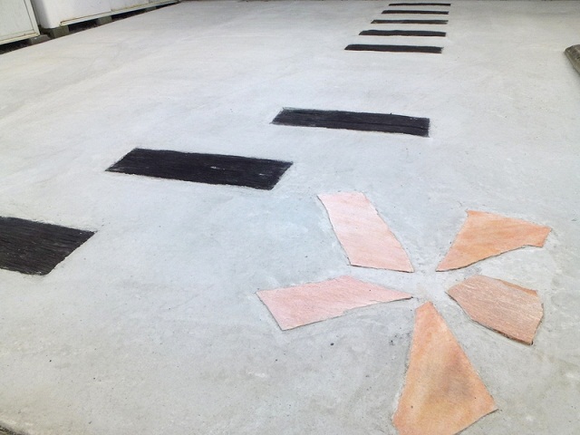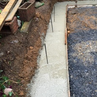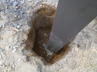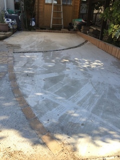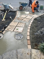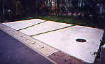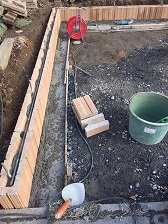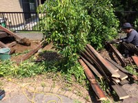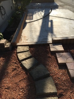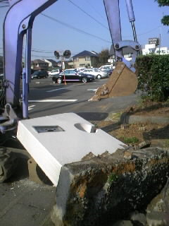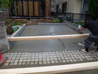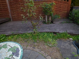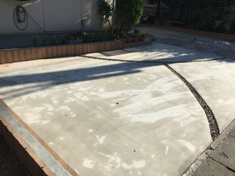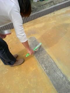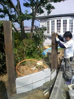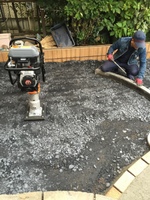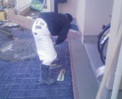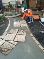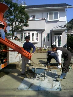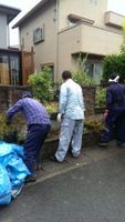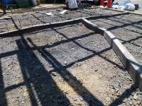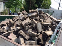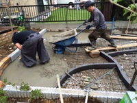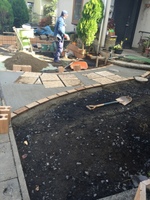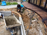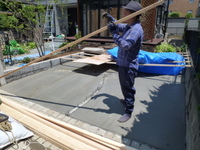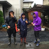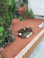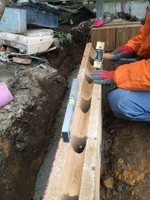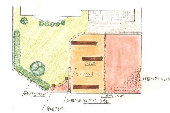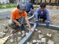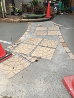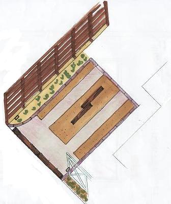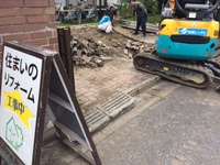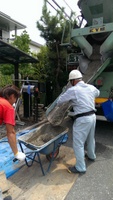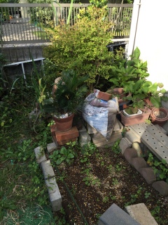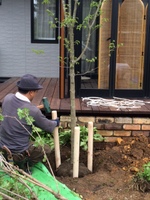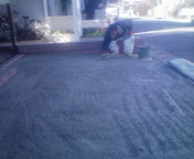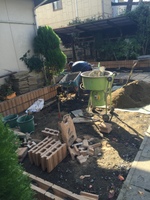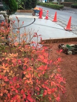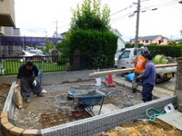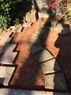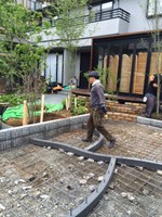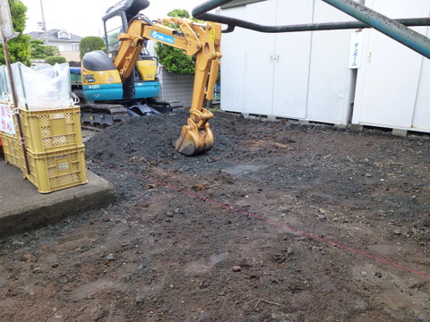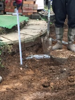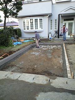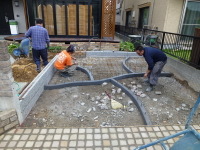 駐車場から続く、北側園路の掘削、防草シート張り、瓦チップの敷き込み
