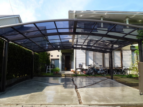 夫婦2台駐車場のカーポート、屋根材をポリカーボネート板に交換