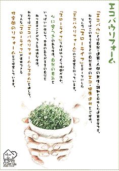 国の厳しい検査機関が認定し、成分表示などが情報開示された建材だけをエコロジー建材と呼ぶ環境先進国 ドイツ・スイスの厳選された自然素材を多用いたします。住む人の安心と健康と環境を考えたエコロジー&バウビオロギー【エコバウ・リフォーム】をアップルからおとどけいたします。