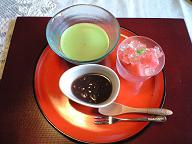このお店は元々、福島県南会津町にあった築100数十年の庄屋の古民家を建築事務所のオーナーが移築再生したものです。1階は建築事務所と甘味処。2階はギャラリーとなっている。玄関を入ると『水琴屈』のピチョンと水の音。季節の旬を織り込んだ和菓子と抹茶で一服をどうぞ。