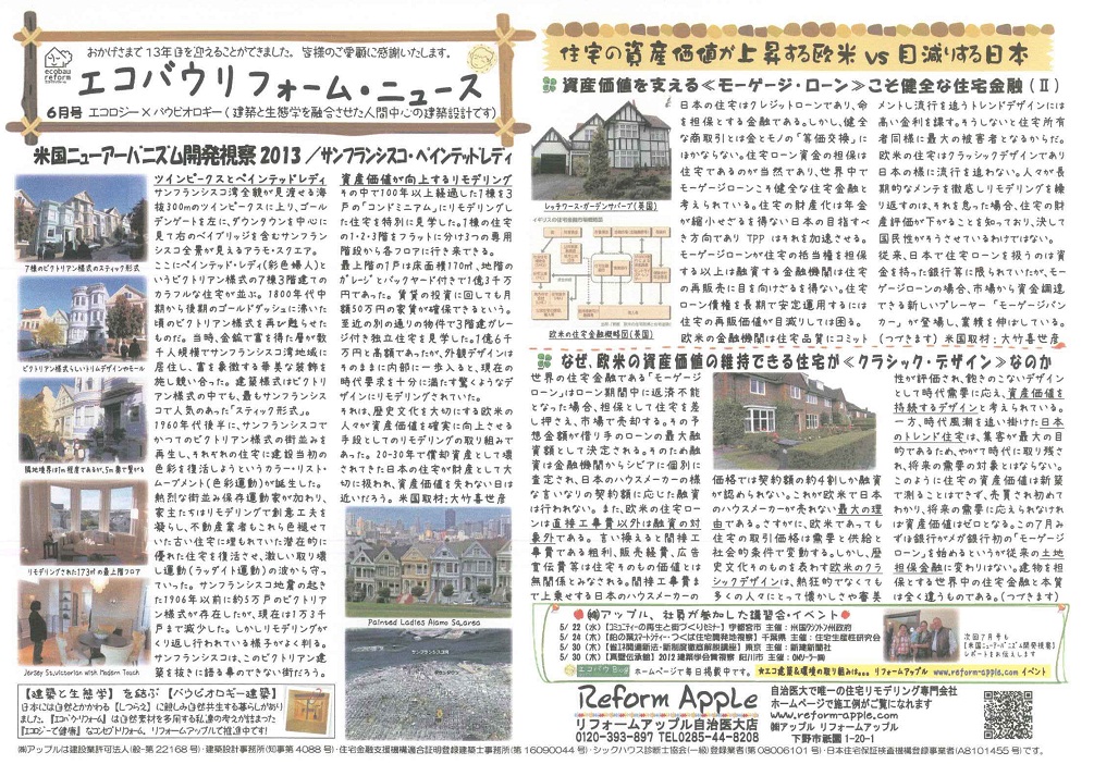 ![]() 【サンフランシスコ・ベイエリアに多いビクトリアン様式のスティック形式】 スティック形式の名称は、20世紀後半になってエール大学教授ビンセント・J・スカーリー・Jrによって命名されたものである。それはビクトリアン様式と一括りにされていたスティック形式であったものを、木造建築であれば、構造体である軸組みを、化粧として建築物のファサードのデザインに取り入れたものである。スティック形式のデザインのベースとなっている構造モデルは、アングロサクソンがデンマークからブリティン島に持ち込んだハーフティンバー(ブラック&ホワイトと呼ばれる軸組みで、ホゾ差し、込み栓、釘を使わない構造工法)である。スティック形式の実際の構造は、このデザインとは全く無関係で、2X4工法やパネル工法、それ以外の鉄筋コンクリート造にもこのデザインは採用されている。 ![]() ![]() 【米国・TND開発に多いクラフツマン様式のバンガロウ型式】 【チューダー様式】 ![]() 【ペインテッド・レディ/カリフォルニア州・サンフランシスコ】 ![]() ![]() ![]() ![]() ![]() ![]() ![]() 【資産価値を失わない欧米の住宅金融・モゲージローンの概略図】 米国 英国![]() 【資産価値を失わない欧米の住宅地】 【パッシブハウスの概念図】 ![]() 【スマートハウスの概念図】 ![]() ![]() ![]() 2011-12年:海外視察地の現地からのリアルタイムBlog 米国リモデリング&ニューアーバニズム建築視察・バックナンバー2011年10月12日〜19日 2011年・もう一つの海外からのリアルタイムBlog 英国&ドイツ建築視察・バックナンバー2011年7月7日〜14日 ![]() 【自然エネルギーは太陽光発電だけではない:電力自由化と賢い政策で大躍進のドイツ】 太陽光発電は家庭の屋根に限らずスーパー・オフィス・学校・農場などより【大規模な場所】に事業として展開され、メンテナンスし易い壁面取付けが多い。日本のように画一的に【家庭の屋根】に・・・という政策ではなく真の意味で【電力自由化】が実現した風景である 電力の省エネに限らず、生活のあらゆる場面で無駄が省かれている。 日本やアメリカほど利便性が追求されていないヨーロッパでは、例えば車のカーシェアリングの普及も多く、専用の駐車場もある。 自転車が多いのは短絡的に「国民性」という言葉では決して片付けられない共同社会に暮らして質素倹約を基本とする生活習慣と、国の賢い政策運営が微妙に絡んでできたものである。 原発反対の旗は普通の家屋にも掲示されコミュニティーで運営されるウインドファームもよく目にする光景である ![]() |