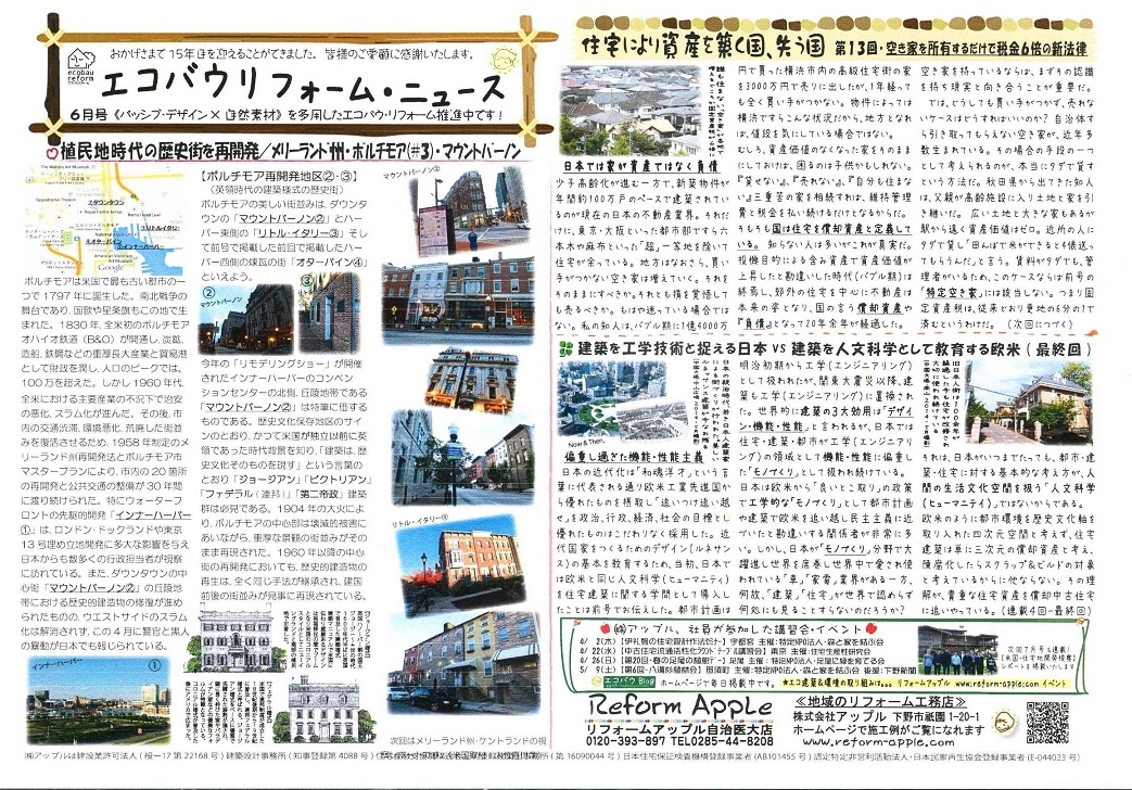 ![]() ![]() インナーハーバー@から徒歩で北上、緩い坂道を振り返ると路面電車がダウンタウンを北上してきた 【マウントバーノンA】ダウンタウン中心街 ダウンタウンの西側の黒人街で、若者同士のいざこざが勃発 【インナーハーバー@】 【リトル・イタリーB】 ジョージアン様式 フェデラル(連邦)様式 ![]() 【資産価値を失わない欧米の住宅地】 オーストリア・タッテンドルフ ドイツ・ダルムシュタット郊外 英国・ポートサンライト ドイツ・フライブルク 【資産価値を失わない欧米の住宅金融・モゲージローンの概略図】 米国 英国![]() ![]() 【米国・TND開発に多いクラフツマン様式のバンガロウ型式】 【チューダー様式】 【スパニッシュ・コロニアル様式】 ![]() 【資産価値を失わない欧米の住宅地】 【パッシブハウスの概念図】 ![]() 【スマートハウスの概念図】 ![]() ![]() ![]() 2011-12年:海外視察地の現地からのリアルタイムBlog 米国リモデリング&ニューアーバニズム建築視察・バックナンバー2011年10月12日〜19日 2011年・もう一つの海外からのリアルタイムBlog 英国&ドイツ建築視察・バックナンバー2011年7月7日〜14日 ![]() 【自然エネルギーは太陽光発電だけではない:電力自由化と賢い政策で大躍進のドイツ】 太陽光発電は家庭の屋根に限らずスーパー・オフィス・学校・農場などより【大規模な場所】に事業として展開され、メンテナンスし易い壁面取付けが多い。日本のように画一的に【家庭の屋根】に・・・という政策ではなく真の意味で【電力自由化】が実現した風景である 電力の省エネに限らず、生活のあらゆる場面で無駄が省かれている。 日本やアメリカほど利便性が追求されていないヨーロッパでは、例えば車のカーシェアリングの普及も多く、専用の駐車場もある。 自転車が多いのは短絡的に「国民性」という言葉では決して片付けられない共同社会に暮らして質素倹約を基本とする生活習慣と、国の賢い政策運営が微妙に絡んでできたものである。 原発反対の旗は普通の家屋にも掲示されコミュニティーで運営されるウインドファームもよく目にする光景である ![]() |