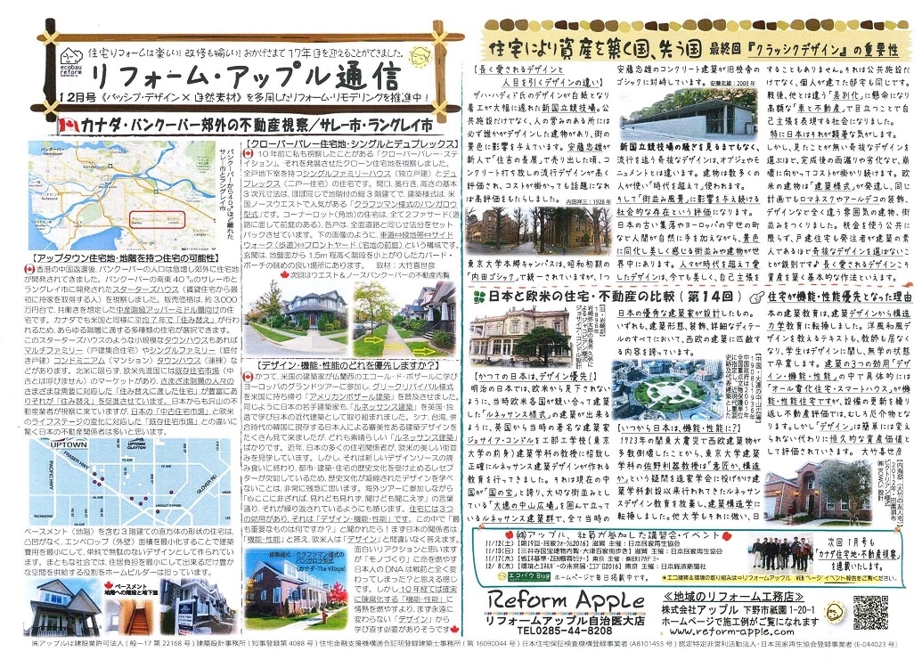 ![]() バンクーバーから南東に約40分の郊外住宅地「サレー・ラングレイ」 ![]() 【アップタウン】 【クローバーバレー】 ジョージアン様式 フェデラル(連邦)様式 ![]() 【ジョージアン様式】 英国ハノーバー朝の国王ジョージ1〜4世の時代、1600年代半ばに英国で普及した建築様式 建築マニュアルで米国に伝わり威厳あるデザインは裕福移民の間でブームとなり米国のコロニアルスタイルとしてニューイングランドと南部の植民地で定着した。 【フェデラル(連邦)様式 米国で連邦制度が成立した18世紀後期から19世紀に普及し、連邦フェデラル様式と呼ばれる ジョージアン様式をベースに優雅で洗練された装飾が施され、縦に長く伸びた窓やパラディアン窓などの優美なフォルムが特徴となっている。 コロニアル様式が普及した後にアメリカで広まった。 【資産価値を失わない欧米の住宅地】 オーストリア・タッテンドルフ ドイツ・ダルムシュタット郊外 英国・ポートサンライト ドイツ・フライブルク 【資産価値を失わない欧米の住宅金融・モゲージローンの概略図】 米国 英国![]() ![]() 【米国・TND開発に多いクラフツマン様式のバンガロウ型式】 【チューダー様式】 【スパニッシュ・コロニアル様式】 ![]() 【資産価値を失わない欧米の住宅地】 【パッシブハウスの概念図】 ![]() 【スマートハウスの概念図】 ![]() ![]() ![]() 2011-12年:海外視察地の現地からのリアルタイムBlog 米国リモデリング&ニューアーバニズム建築視察・バックナンバー2011年10月12日〜19日 2011年・もう一つの海外からのリアルタイムBlog 英国&ドイツ建築視察・バックナンバー2011年7月7日〜14日 ![]() 【自然エネルギーは太陽光発電だけではない:電力自由化と賢い政策で大躍進のドイツ】 太陽光発電は家庭の屋根に限らずスーパー・オフィス・学校・農場などより【大規模な場所】に事業として展開され、メンテナンスし易い壁面取付けが多い。日本のように画一的に【家庭の屋根】に・・・という政策ではなく真の意味で【電力自由化】が実現した風景である 電力の省エネに限らず、生活のあらゆる場面で無駄が省かれている。 日本やアメリカほど利便性が追求されていないヨーロッパでは、例えば車のカーシェアリングの普及も多く、専用の駐車場もある。 自転車が多いのは短絡的に「国民性」という言葉では決して片付けられない共同社会に暮らして質素倹約を基本とする生活習慣と、国の賢い政策運営が微妙に絡んでできたものである。 原発反対の旗は普通の家屋にも掲示されコミュニティーで運営されるウインドファームもよく目にする光景である ![]() |