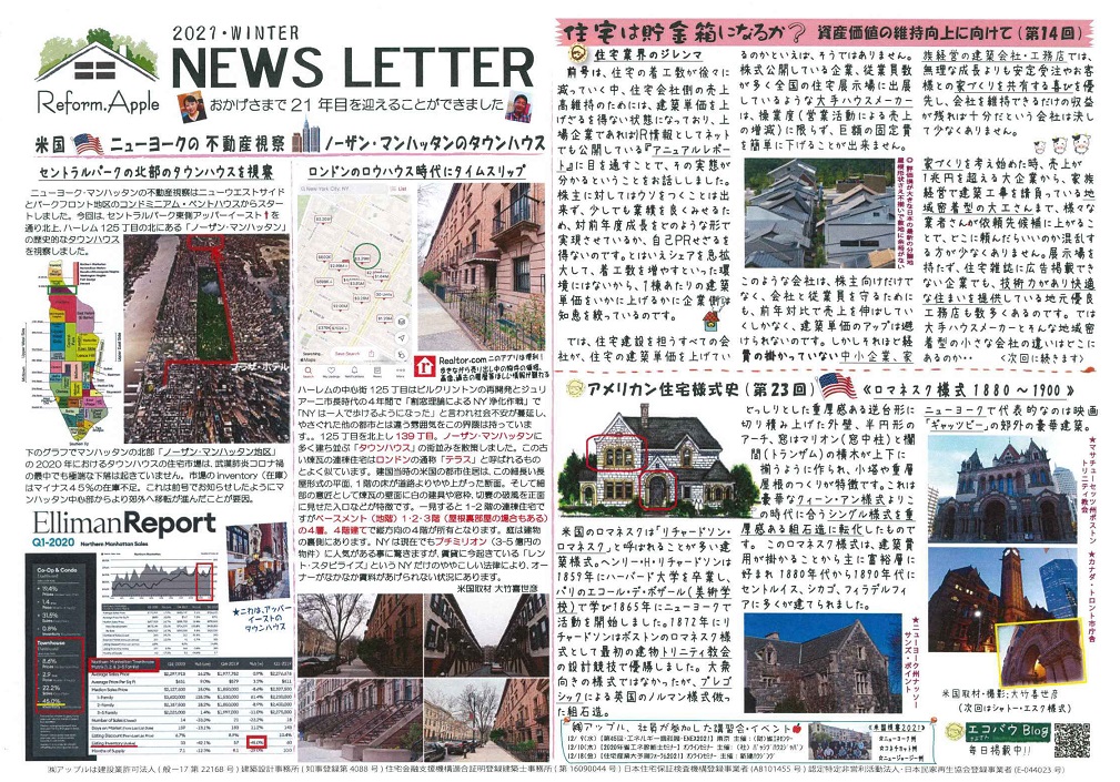 ![]() ノーザン・マンハッタンのタウンハウス ![]() ![]() ![]() ![]() ![]() ![]() ![]() ジョージアン様式 フェデラル(連邦)様式 ![]() 【ジョージアン様式】 英国ハノーバー朝の国王ジョージ1〜4世の時代、1600年代半ばに英国で普及した建築様式 建築マニュアルで米国に伝わり威厳あるデザインは裕福移民の間でブームとなり米国のコロニアルスタイルとしてニューイングランドと南部の植民地で定着した。 【フェデラル(連邦)様式 米国で連邦制度が成立した18世紀後期から19世紀に普及し、連邦フェデラル様式と呼ばれる ジョージアン様式をベースに優雅で洗練された装飾が施され、縦に長く伸びた窓やパラディアン窓などの優美なフォルムが特徴となっている。 コロニアル様式が普及した後にアメリカで広まった。 【資産価値を失わない欧米の住宅地】 オーストリア・タッテンドルフ ドイツ・ダルムシュタット郊外 英国・ポートサンライト ドイツ・フライブルク 【資産価値を失わない欧米の住宅金融・モゲージローンの概略図】 米国 英国![]() ![]() 【米国・TND開発に多いクラフツマン様式のバンガロウ型式】 【チューダー様式】 【スパニッシュ・コロニアル様式】 ![]() 【資産価値を失わない欧米の住宅地】 【パッシブハウスの概念図】 ![]() 【スマートハウスの概念図】 ![]() ![]() ![]() 2011-12年:海外視察地の現地からのリアルタイムBlog 米国リモデリング&ニューアーバニズム建築視察・バックナンバー2011年10月12日〜19日 2011年・もう一つの海外からのリアルタイムBlog 英国&ドイツ建築視察・バックナンバー2011年7月7日〜14日 ![]() 【自然エネルギーは太陽光発電だけではない:電力自由化と賢い政策で大躍進のドイツ】 太陽光発電は家庭の屋根に限らずスーパー・オフィス・学校・農場などより【大規模な場所】に事業として展開され、メンテナンスし易い壁面取付けが多い。日本のように画一的に【家庭の屋根】に・・・という政策ではなく真の意味で【電力自由化】が実現した風景である 電力の省エネに限らず、生活のあらゆる場面で無駄が省かれている。 日本やアメリカほど利便性が追求されていないヨーロッパでは、例えば車のカーシェアリングの普及も多く、専用の駐車場もある。 自転車が多いのは短絡的に「国民性」という言葉では決して片付けられない共同社会に暮らして質素倹約を基本とする生活習慣と、国の賢い政策運営が微妙に絡んでできたものである。 原発反対の旗は普通の家屋にも掲示されコミュニティーで運営されるウインドファームもよく目にする光景である ![]() |
