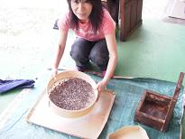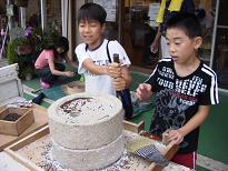 御影石の石臼を使い今回は茨城県三和町(古河市)蕎麦の実を引き