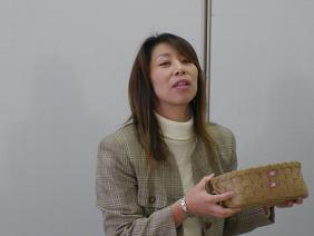 「エコ・クラフト」ともよばれる梱包用の紙テープでかごを作りました。