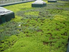 研究センターの陸屋根は、屋上緑化でパッシブな遮熱がなされている。セダムがきれい