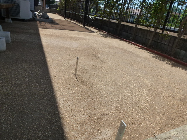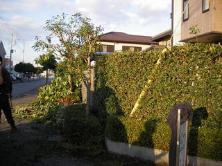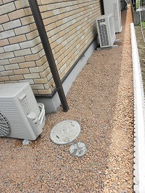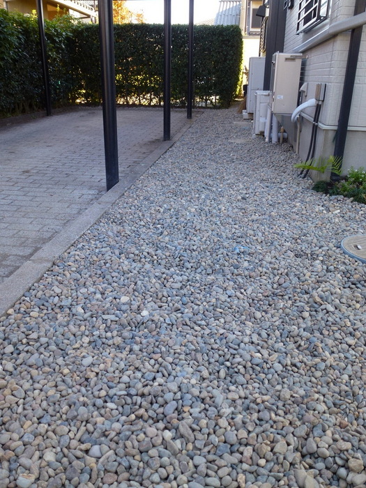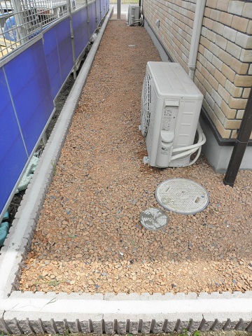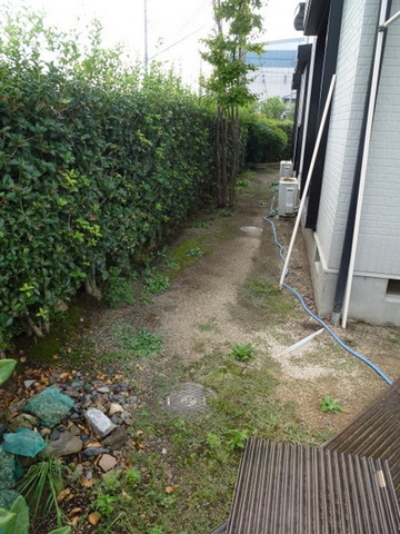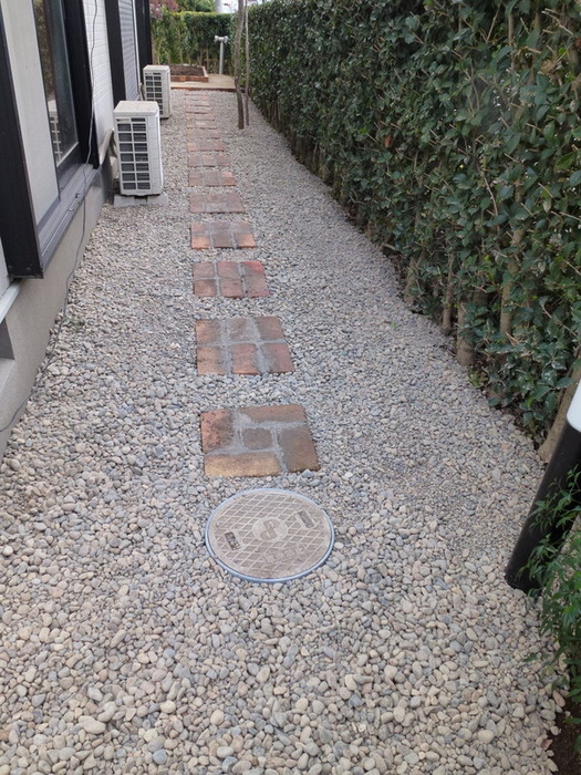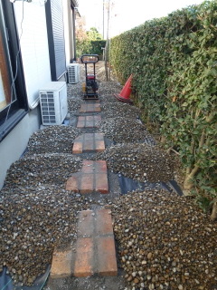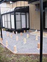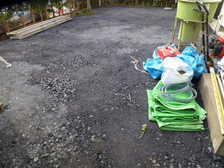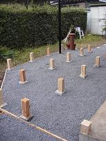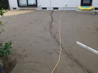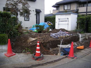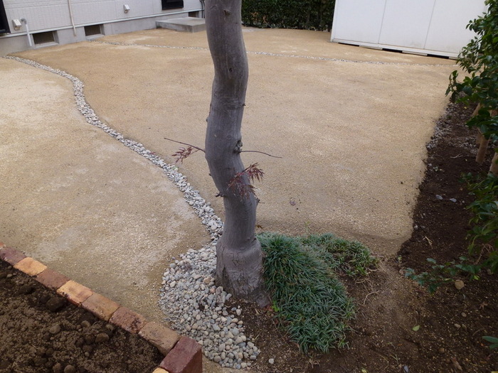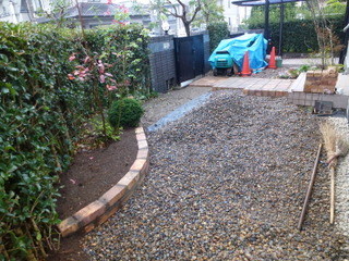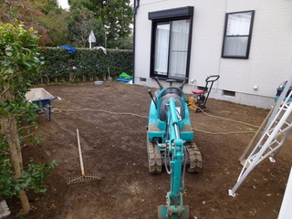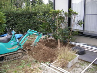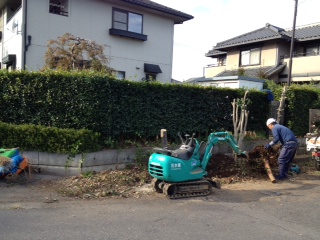 東側主庭: 植栽抜根、掘削、砕石転圧