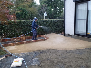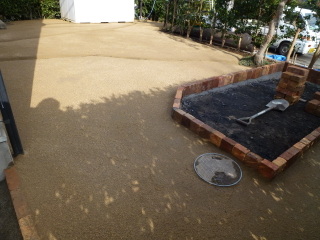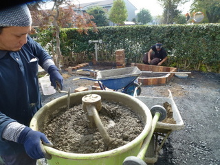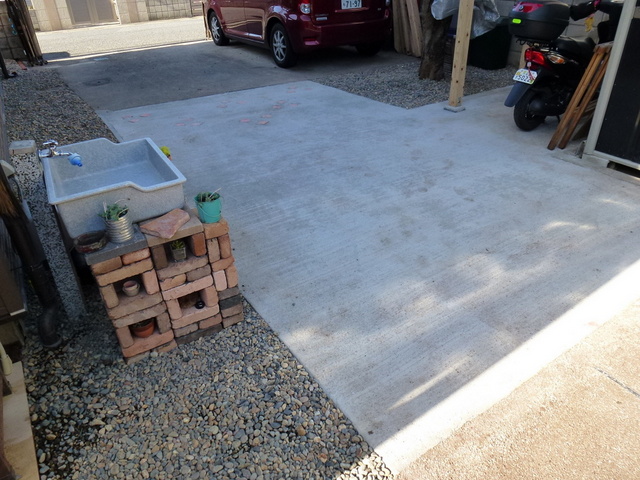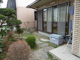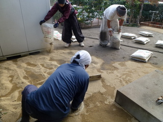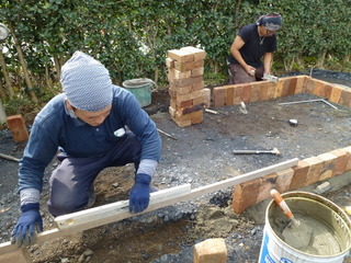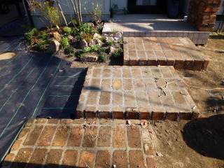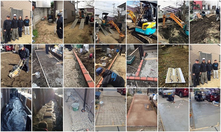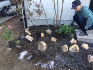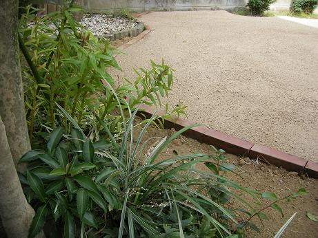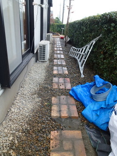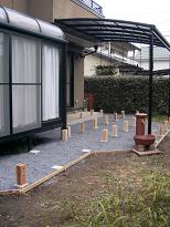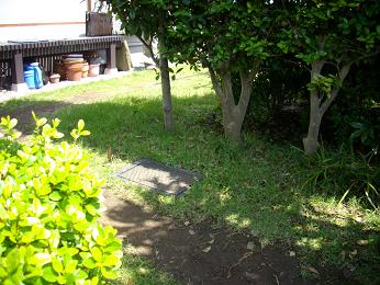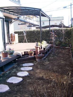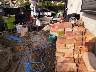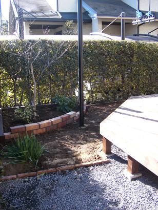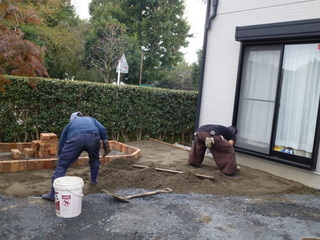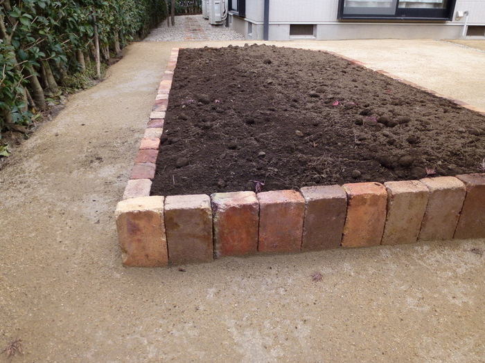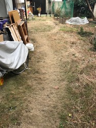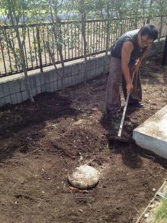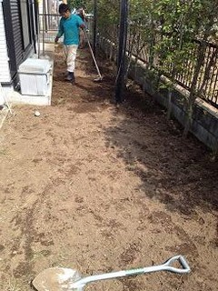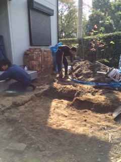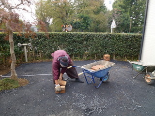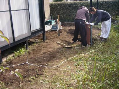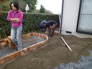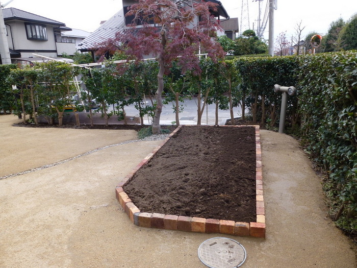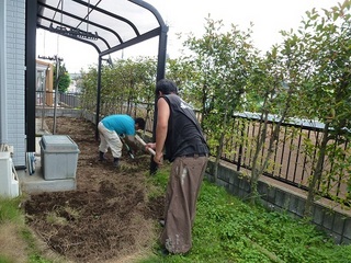 主庭: 植栽抜根、掘削、三和土土間造成、ミニ菜園造成
