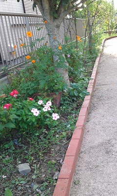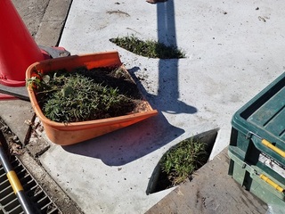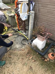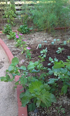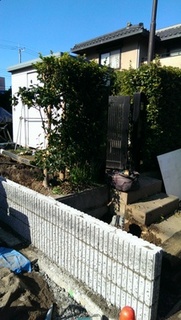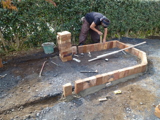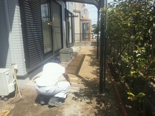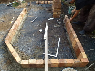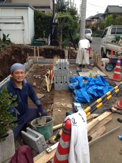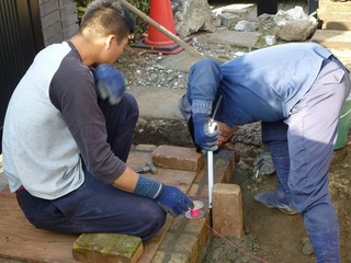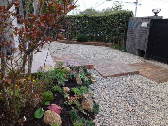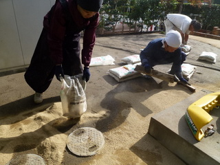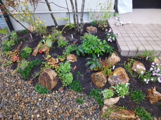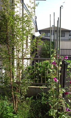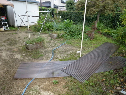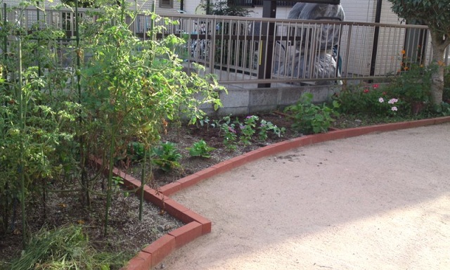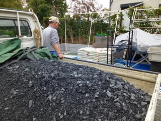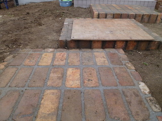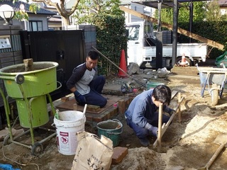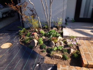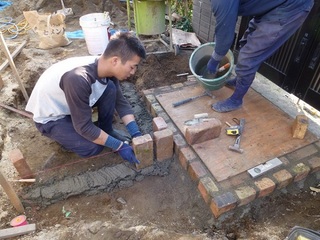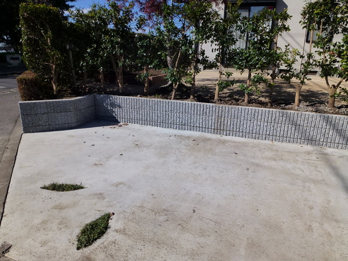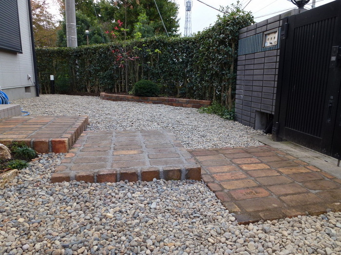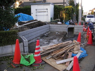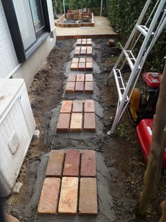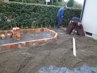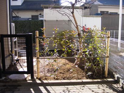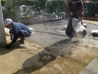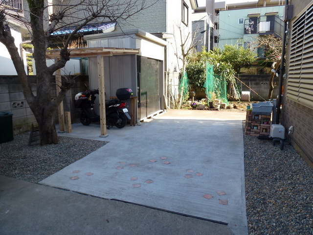 主庭: 植栽抜根、掘削、三和土土間造成、ミニ菜園造成