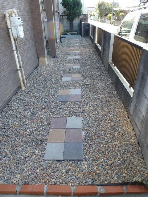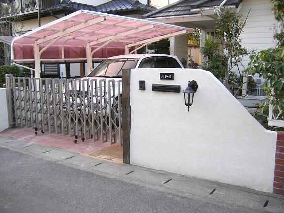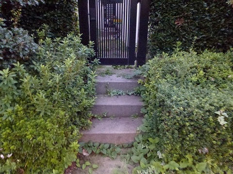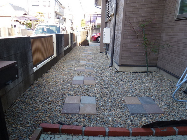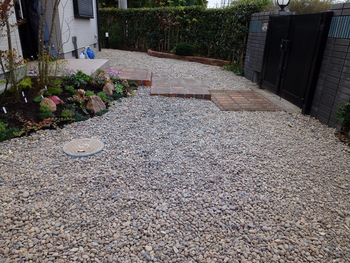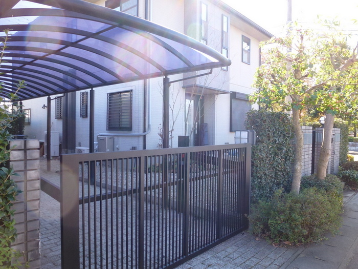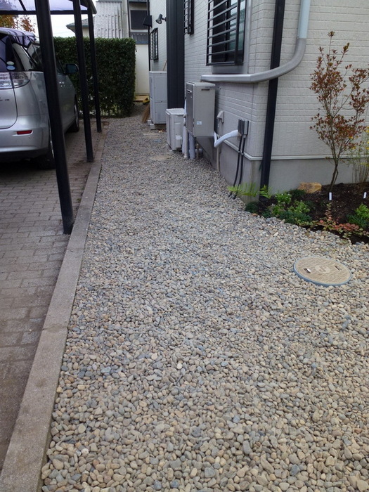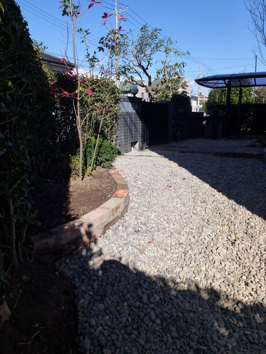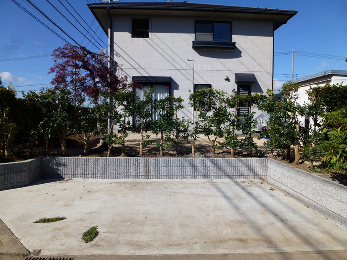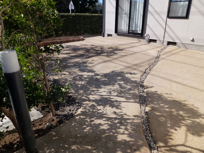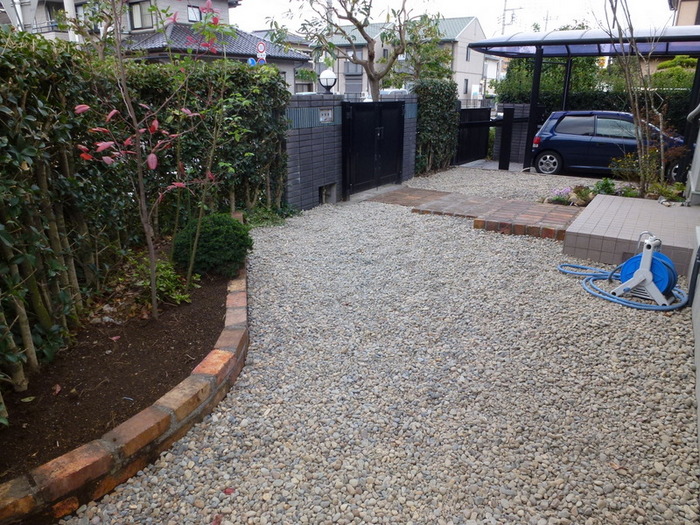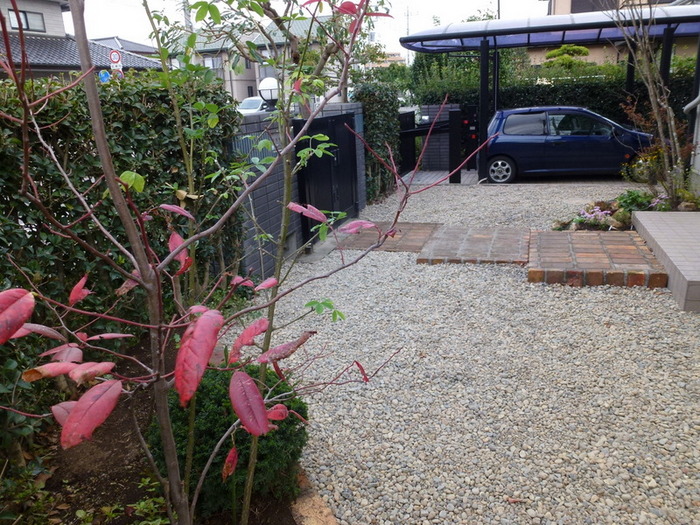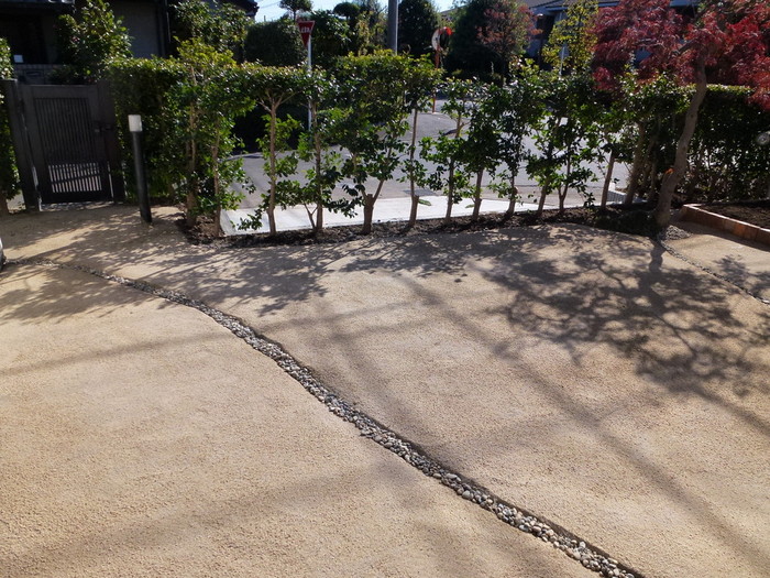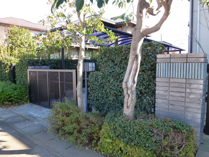 西側玄関周り: 電動カーゲート、アプローチ造成、植栽グリーン