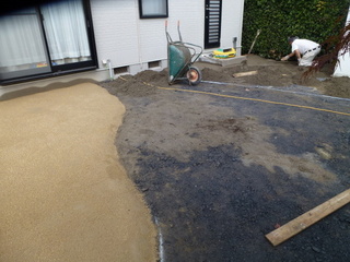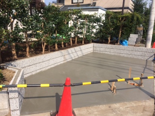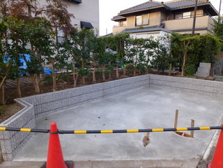 ワイヤーメッシュ敷込み、生コンクリート打設