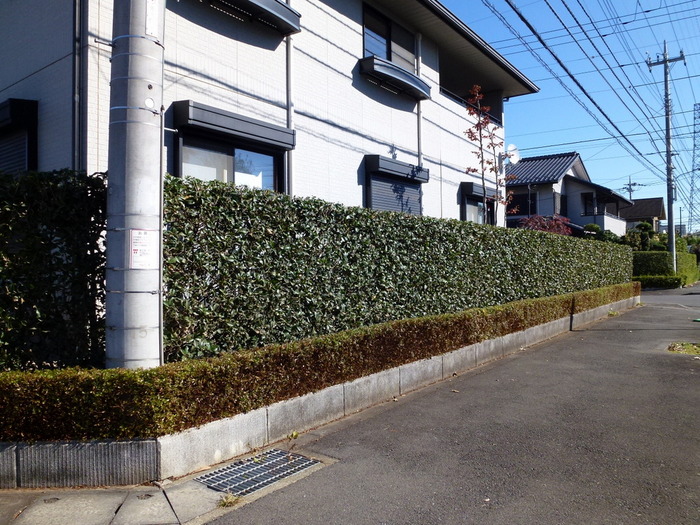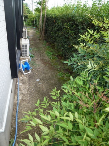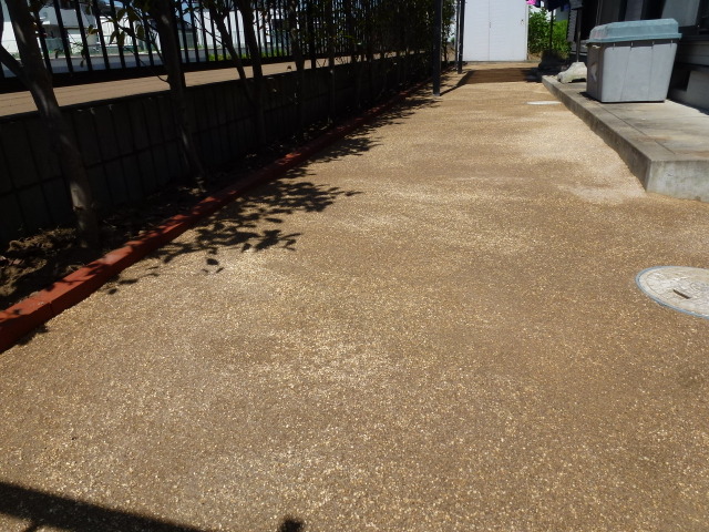 セットバックしたサービスヤードは植栽で演出され美しい景観は