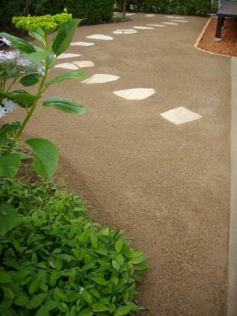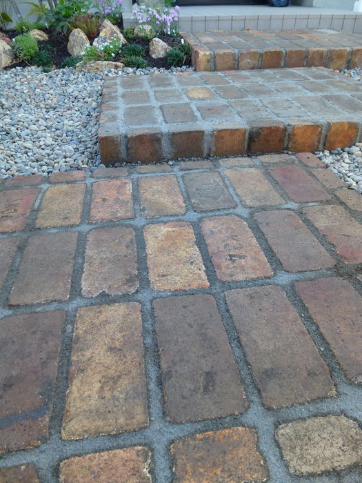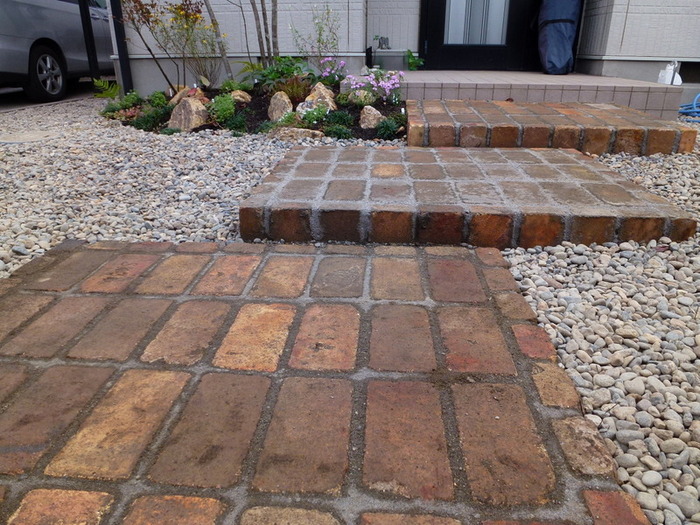 ゆったりしたリビングから楽しむ豊かな緑に囲まれたガーデン・スペース。訪れる人を魅了する建物・庭と外構の調和とエントランスへ続くペイブメントには