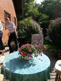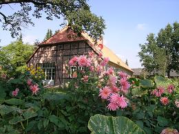 暖炉は漆喰で固められ、お父さんの形見のマイセンの皿が埋め込まれています。家族、自然環境を考えずにはいられない風景でしたお昼に訪れたのは数百年前の農家を買い取り、最近ECOホテル&レストランをオープンしたHOF ROSE(バラの家)です。まさにその名の通り一面花と自然に囲まれたすばらしいホテルでした。