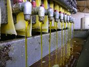 特に亜麻仁油を絞る工程は「工場」にはほど遠く、リボスのこだわりが出ています。まず有機栽培の亜麻を使い、低速で回転する絞り機で、機械温度40度で「一番絞り油」を絞り出し、それをさらにフィルターで濾して食品レベルの亜麻仁油が出来上がります。この時の機械温度が40度を大きく超えると亜麻仁油に含まれるビタミンDが壊れ、亜麻仁油の酸化を大幅に進めてしまい塗膜の紫外線による劣化を早めます。でも、多くのメーカーはこの絞り工程で効率を上げようと回転をあげるので、80度まで上がってしまい紫外線に弱い塗料が出来上がるのです。
