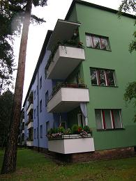 今朝のベルリンは朝から小雨で最高気温17度、最低気温7度という、日本の今の季節と違ってまるで冬!!でも、かの有名なブルーノタウトの80年前の集合住宅を見学しようとバスで旧西ドイツから東ドイツへ。待っていたのは沢山のブルーノタウトの本を書いていて、建築家として現在ブルーノタウトの集合住宅を元の色とデザインに復元中の設計事務所のボスでありブルーノタウトのファンで知らない人はいないというブレンネ氏でした。 なんと本人が出てきて解説という、垂涎のスタートでした。どんな建築に対してもデザインと同時に自然素材、エコロジー、省エネを最優先で考える仕事しかしないというブレンネ氏の最新の集合住宅も見学し、如何に自然素材が機能的で耐久性があり、住宅の耐久性や人間の健康、インテリア性をちゃんと考えると自然素材に行き着くことを教えられました。実際にブルーノタウトの修復でも、コストの点で自然素材の使用に反対する政府に対して、ブルーノタウトは化学合成と自然素材の外壁材を実際に施工し、耐久性や汚れを試験し、予算担当者に自然素材の方が圧倒的に汚れにくく、耐久性があることを証明し、標準で使うことを認められました。結果的に内装だけでなく外装も
