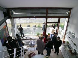 最初に訪れたのは、1970年代コペンハーゲンから新しい形のリノベーションを提案し、今ヨーロッパ中から注目されるバンコンセン設計事務所だ。それまでのコペンハー ゲンで普通であった「大きく高い」集合住宅を、「低く、密集」させることで、家が個人の所有物ではなく、公益性の高い存在であることを訴え、ヨーロッパ中で受け入 れられ、住宅デザインを変えたといわれる。バンコンセン設計事務所2000年に設計した通称「ボートホール」は、元々戦艦を保管するために60年前に建てられた建物を住宅にリノベーションしたものだ。