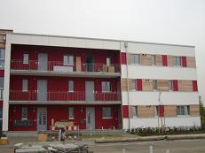 67戸 のロフト型アパートは元の建物の重量感のある構造をそのまま使用し、最小限の改修で高級アパートに変えてしまった。寒冷地でありながら壁一杯に広がるガラス窓、運 河に連続し、都心からわずか10分の場所が、自然の環境を暮らしに取り入れた開放感のある集合住宅にリノベーションされた。もちろん白い漆喰や無垢材がふんだんに 使われていることは当然だ。この集合住宅は、なんと言っても「かつての戦争の施設が、今は豊かで平和な暮らしを作る施設」に変わっていることが一番のメッセージで あり、平和な時代に不要なものを、有効に活用していること、そして平和な時代に不要なものをリノベーションして役に立つものに変えていき長く使う、これこそが廃棄 物を減らし、製造エネルギーを減らすエコロジーだ。