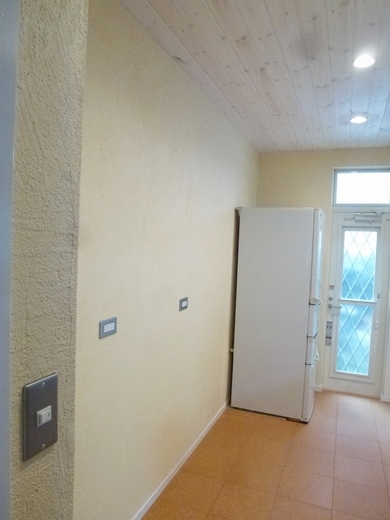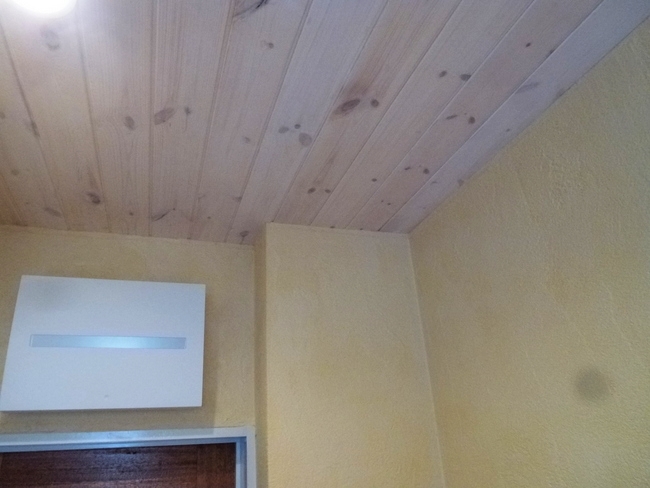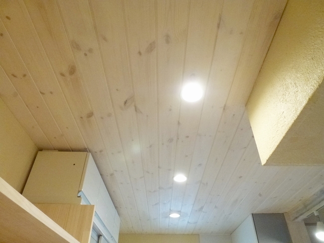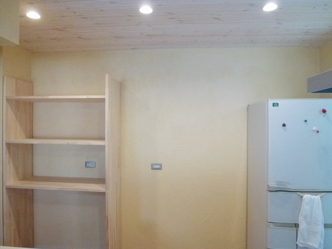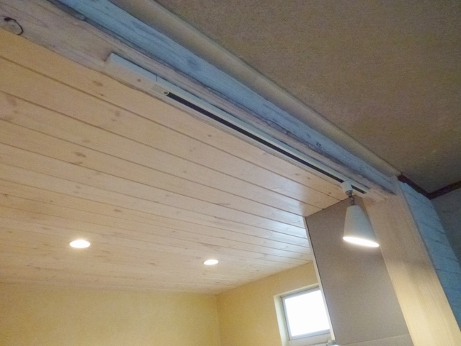 スイス漆喰とホワイトウッドパネル(リボス塗装)