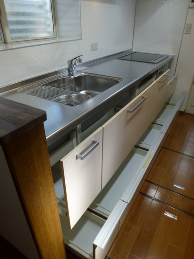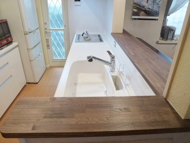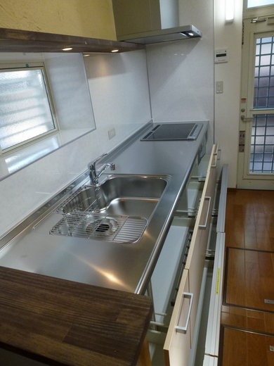 器具の入替だけでなく間取りの変更などをともなうキッチンのリフォームです。基本となるキッチンの入替と今までの間取りでは実現できなかった満足キッチンのスペースが誕生しました。 |