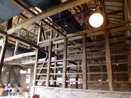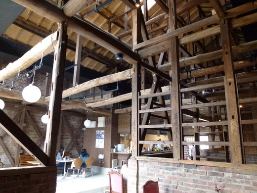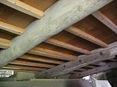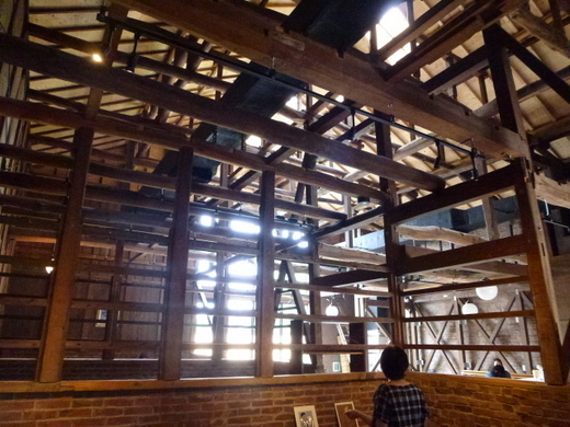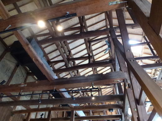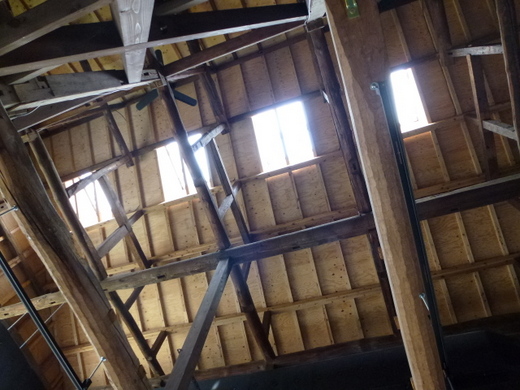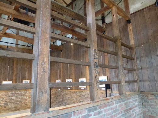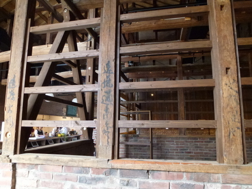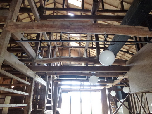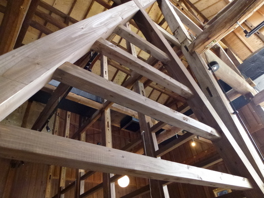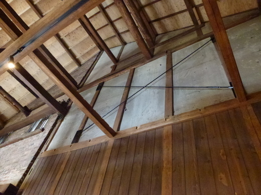 当時の貫工法(在来工法の原型)や竹小舞の土壁。地場の欅と松の曲がり梁が素晴らしい。