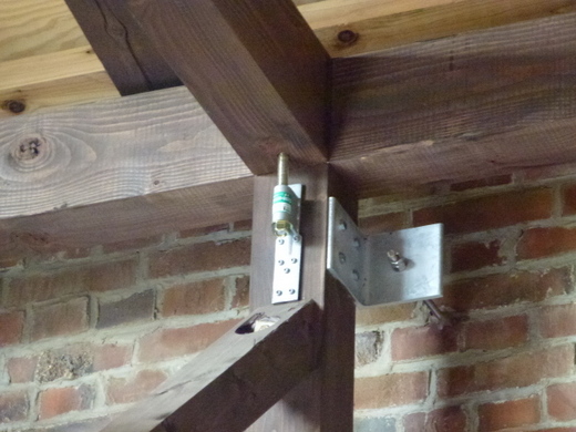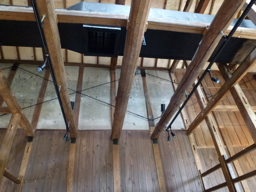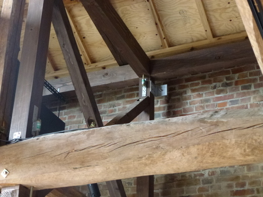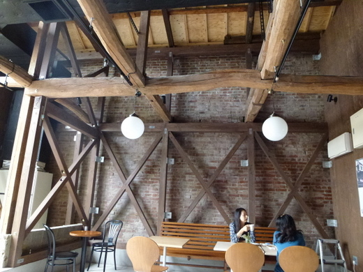 改装中:青木さんの地松の古材梁を2本活用、ドイツ・リボス自然素材塗料で綺麗に蘇る。
