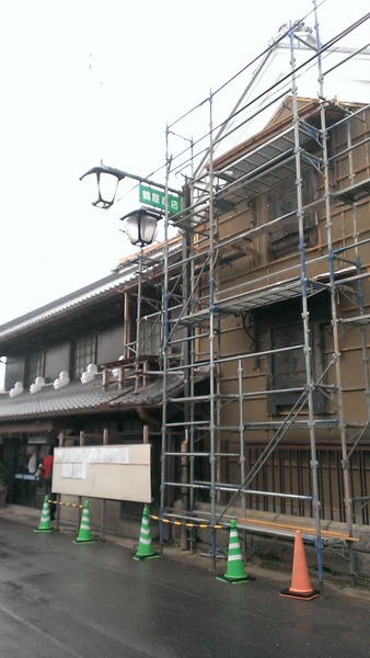 増改築前(外観) (和室) (廊下) 改装中:古材をクレーンで搬入