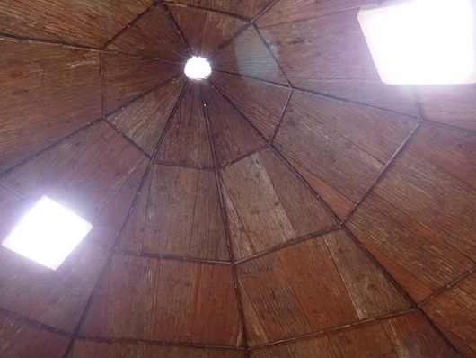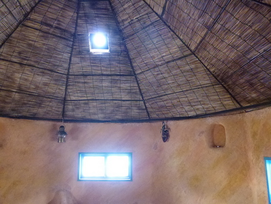 当時の貫工法(在来工法の原型)や竹小舞の土壁。地場の欅と松の曲がり梁が素晴らしい。