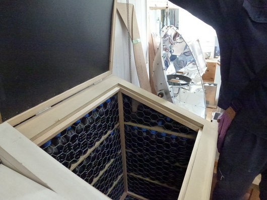 改装中:青木さんの地松の古材梁を2本活用、ドイツ・リボス自然素材塗料で綺麗に蘇る。