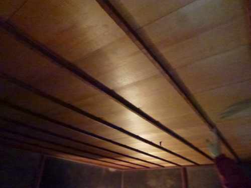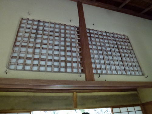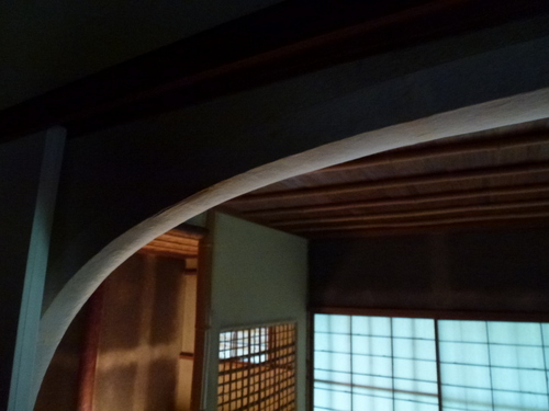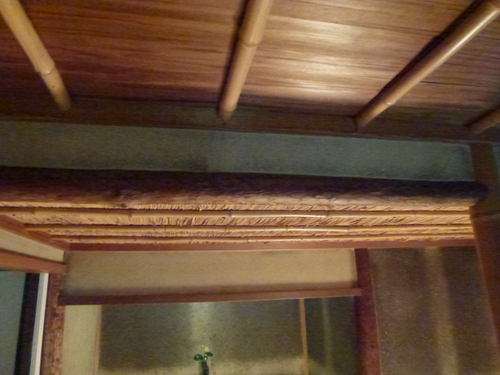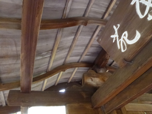 当時の貫工法(在来工法の原型)や竹小舞の土壁。地場の欅と松の曲がり梁が素晴らしい。