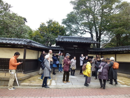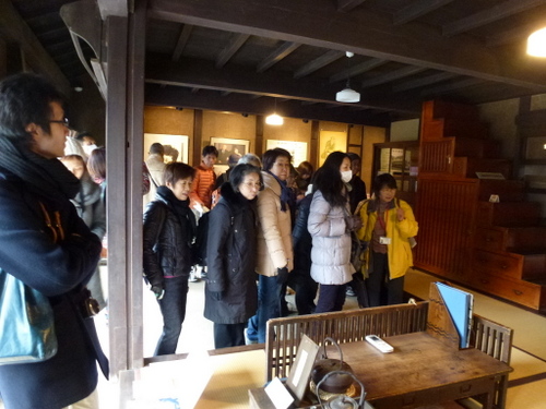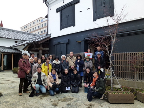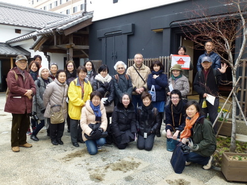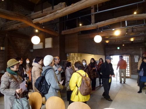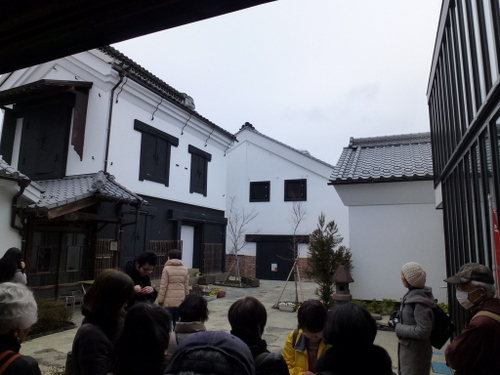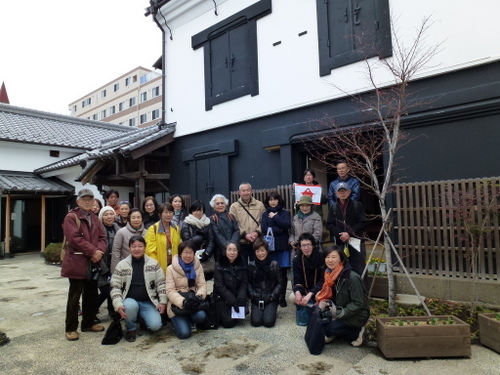 日本民家再生協会では、本部+茨城支部+栃木支部の共催で戦国時代の古河公方の本拠地であり、その後江戸時代には日光街道宿場町として繁栄してきた「歴史街・古河」の散策を行った。当日は、寒気がまだ残る肌寒くぐずついた日であったが、雨天は免れた。街並み散策の案内役は、地元古河市の公認ガイド矢口にお願いし、総勢23名の参加者と共に古河の歴史文化に触れる散策となった。「万葉集」に情景が二首詠まれ、奈良時代には渡良瀬川の渡し場として賑わった古河。平安期には、東日本最大級の製鉄や窯業の生産拠点、また室町から戦国時代は古河公方の本拠地として、江戸時代は古河城の城下町、日光街道宿場町・古河宿として繁栄した歴史がある。古河市は、「関東ド・マンナカ宣言都市として、茨城県最西端、関東平野のほぼ中央、関東の小京都としての歴史文化の町」を掲げている。平成17年隣接の総和町、三和町と合併し現在の人口は145,000人である。近年、古河市では酒蔵、袖蔵、大谷石の蔵、土蔵を現在のニーズに合わせて修復して、様々な要素に再活用されている。黒漆喰、白漆喰の蔵が並ぶ「坂長」は江戸時代より、両替商、酒問屋を営んできたが、幕を降ろし、現在はギャラリーやカフェ等のコミュニティースペースとして「地域住民や来訪者の憩いの場」として新たな価値を創造している。商家の店蔵や煉瓦蔵などを修復し活用しているのが「みらい蔵」で、地産地食をコンセプトに「食」を通じて、地元の魅力を発信している。旧武家屋敷の土塀が残る日光街道宿場町の古河宿。歴史の面影が随所に残る春の城下町を公認ガイドの矢口さんの資料を拝借し視察順に紹介していく。①坂長(国登録有形文化財)坂長本店は、古河城下で江戸初期から両替商を始め、江戸末期から酒問屋を営んできた商家の建造物を、伝統的工法で修復した施設で、食事処、土産処として活用している。平成24年4月29目オープンし現在は古河市所有となっている。建築年代の異なる5つの蔵と1つの主屋で構成され、旧古河城の数少ない建築遺構である。通りに面した店蔵、袖蔵は、明治6年(1873年)廃城令にともなって払い下げられた古河城の建造物で店蔵は、旧古河城文庫蔵(土産処)袖蔵は旧古河城の乾蔵(ギャラリー)文久3年(1863年)を移築したものである。土蔵造2階建の文庫蔵は、安政5年(1858年)建築で困窮者救済のためのお助け普請によるものである。中蔵は、江戸中期、土蔵造りで瓦葺でありトイレとして活用されている。主星は、明治初期の木造2階建、瓦葺である。石蔵は、大正11年(1922年)石造2階建で瓦葺きであり現在は、コンサート等に活用されている。②福法寺乾門(市指定文化財)は、市内に現存する唯一の古河城内遺構の門で、乾門(北西の方角)である。二の丸御殿の入りロにあったものを明治7年、城取り壊しの際、檀家の一人が払い下げを受け、翌年寺に寄進移築した。城門としては平唐門の特殊な造りで県内では唯一のものである。③鷹見泉石記念館(木造真壁造り平屋)は、古河藩が藩士のために用意した武家屋敷で、古河藩主、土井家の江戸家老「鷹見泉石」が、家老を引退してから晩年(62歳~74歳)を送った住まいを改修し、平成2年歴史博物館の別館として公開された。寛永10年(1633年)土井利勝が前任地、千葉県佐倉城を模して、古河城のご三階櫓を建てた時の余材を使って建てたものである。当時敷地は、現在の約4倍、建物は約2倍あった。屋敷内に珍本「楓樹」があるところから屋敷を楓所、建物を可琴軒(余生を楽しむ処)、書斎を泰西堂(西洋の学問をする処)という。泉石は蘭学者であったが、政治家、藩の外交官、地理学者、収集家として多彩な活動をなし遂げた古河の誇り高き先人の一人である。④古河歴史博物館は、古河城出城跡に平成2年に開館した。周辺の景観を生かした建物は平成4年に日本建築学会賞、8年に公共建築賞を受賞している(設計古田住二)。常設展示は、3室からなり、1室は鷹見泉石が収集、記録、研究した貴重な蘭学資料の概観、2室では原始古代から近代に至る歴史の概観、3室は幕末から明治期にかけて活躍した古河ゆかりの文人たちの書画を公開している。⑤古河文学館は、茨城県初の文学館で、平成10年に会館した。大正ロマンの香り漂う洋館で古河ゆかりの作家の作品を中心に、数々の貴重な資料を展示している。建物2階には、イタリアンレストラン「唐草」がある。⑥篆刻美術館(国登録有形文化財)は、平成3年に日本で初めての篆刻専門の美術館として開館した。大正9年に建築された酒屋の3階建ての石蔵を、当時の雰囲気を残して展示室に改修したもので、平成10年に国の登録有形文化財に指定された。裏蔵、美術学習室がある。印象制度は奈良時代に中国から伝わったもので、現在に至るまで続いている。篆刻は印象から発展した書道芸術の一つで、四書五経や漢詩などから語句を選び、篆書という古文宇(二千数百年前の書体)を柔らかい石や本に刻み、朱色の因泥をつけて紙に